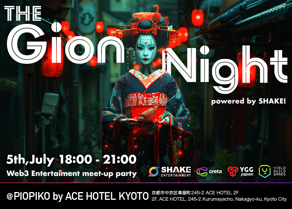SHAKEは、国内最大級スタートアップカンファレンス「IVS Crypto」参加者を中⼼にお招きしたWeb3エンタメVIPパーティー「THE Gion Night 2024」を7⽉5⽇(金)に開催いたします。