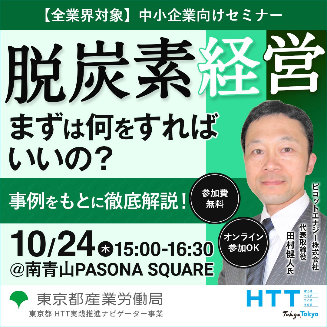 【無料セミナー】脱炭素経営を進めるポイント。エネルギーと経営改善のプロが事例をもとに徹底解説!東京都産業労働局 10月24日開催