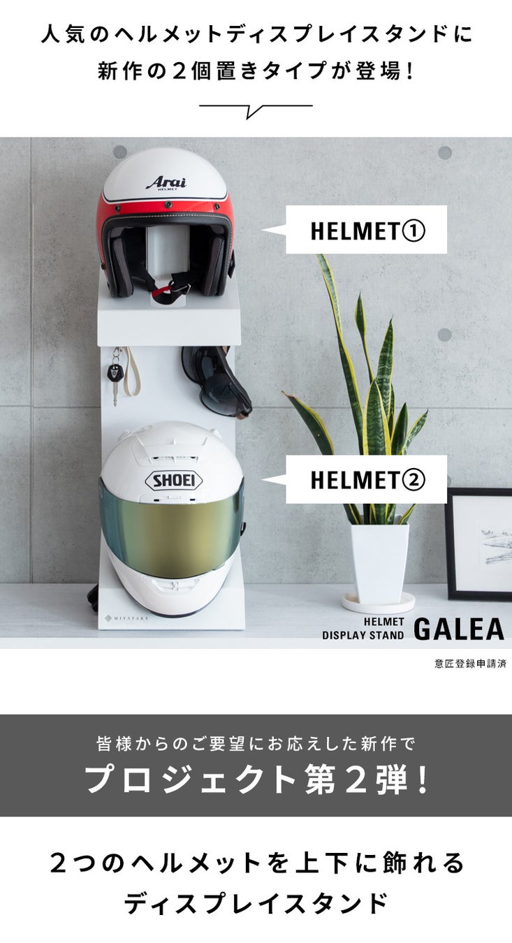 ヘルメットを飾って収納できる『GALEAシリーズ』からヘルメットを2個おける新商品をMakuakeにて先行販売開始