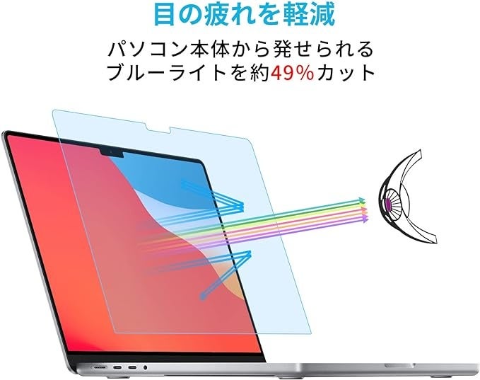 Lifeinnotech「MacBook Pro M3 16インチ用 ブルーライトカットフィルター アンチグレア/反射軽減仕様」の特徴