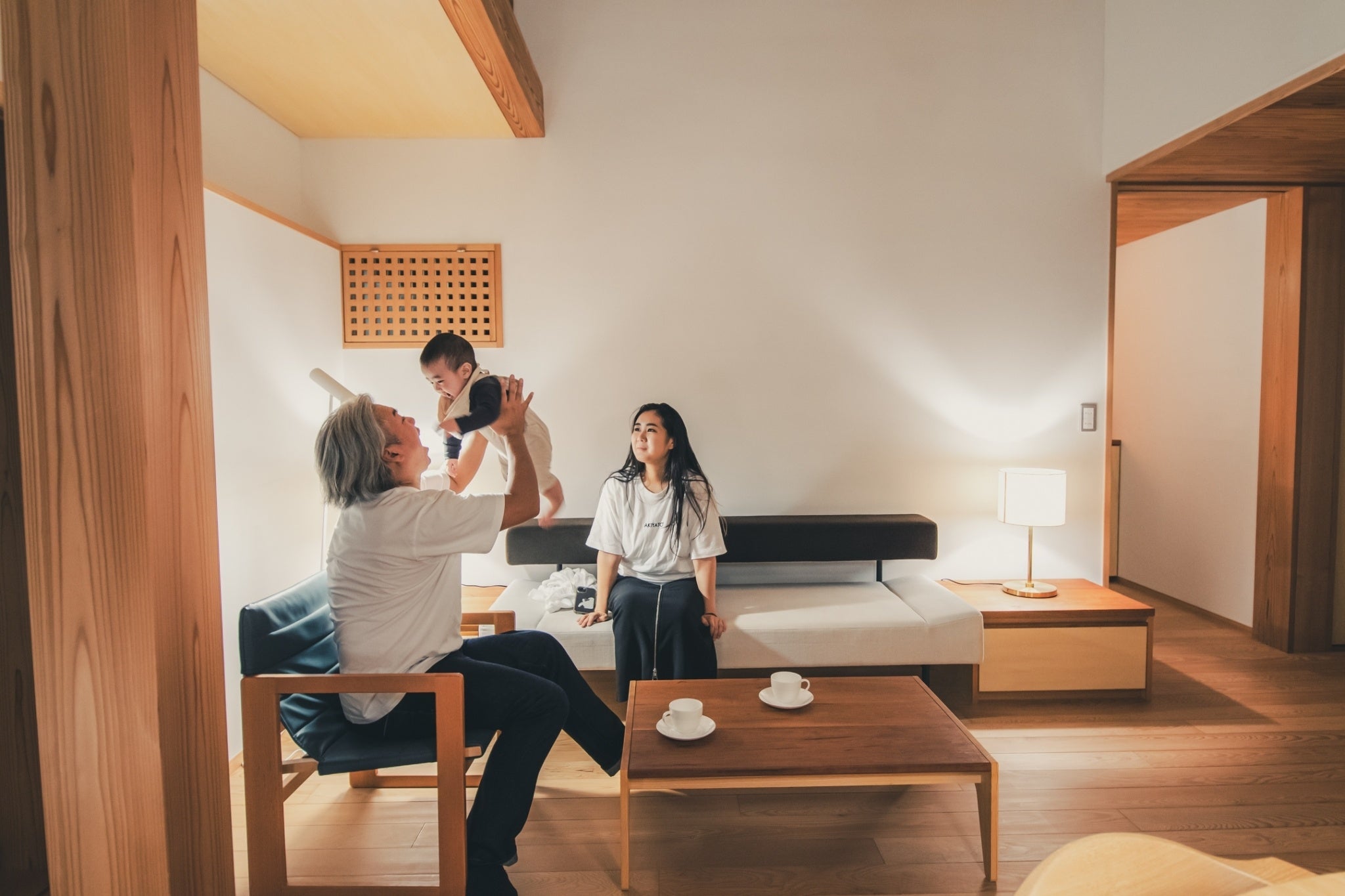 壺谷建設株式会社が、建築家・伊礼智氏や造園家・荻野寿也氏とともにつくりあげたこの施設は、自然素材をふんだんに使用し、「心地よさ」を追求したデザインが特徴。リビングルームからは四季折々の美しい庭を一望でき、庭から吹き抜ける風を感じながら過ごすひとときは、日常の喧騒を忘れさせてくれます。