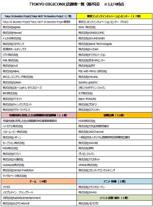 東京都及びXR・メタバース等産業展実行委員会(以下、「実行委員会」という。)はXR・メタバース、AI、Web3及びコンテンツに関連する都内産業の更なる活性化を図ることを目的として、関連する事業者が一堂に会す「TOKYO DIGICONX(第2回TOKYO XR・メタバース&コンテンツ ビジネスワールド)」(以下、「展示会」という。)を、東京ビッグサイト南3・4ホールでのリアル・オンラインによるハイブリッド方式で開催いたします。このたび出展事業者及び主な企画が決まりましたので、お知らせします。