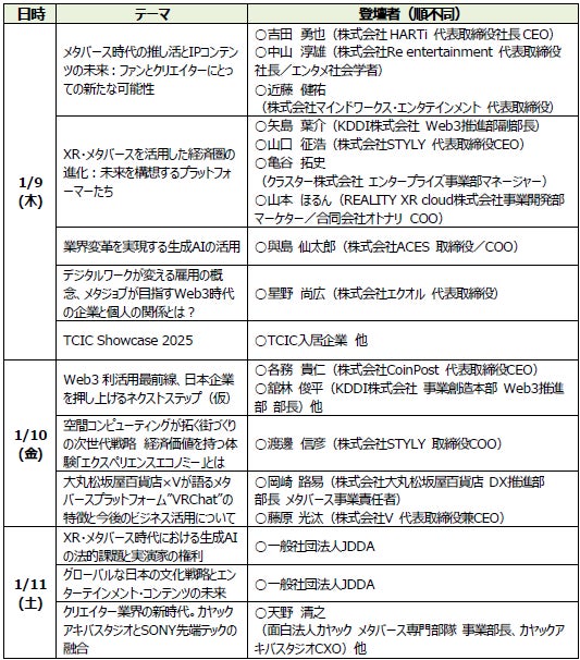 ※1:この他にもリアル・オンラインの各会場にて多種多様なセミナーを予定しています。詳細や時間は、公式ウェブサイト(https://xr-meta-biz.tokyo)をご覧ください。