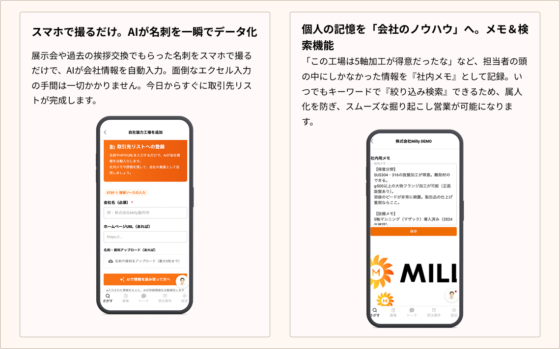 これはMILLYにとって「一世一代の機能」になると確信しています。まずはこの機能を皮切りに、製造業の皆様の営業を強力に支援してまいります。