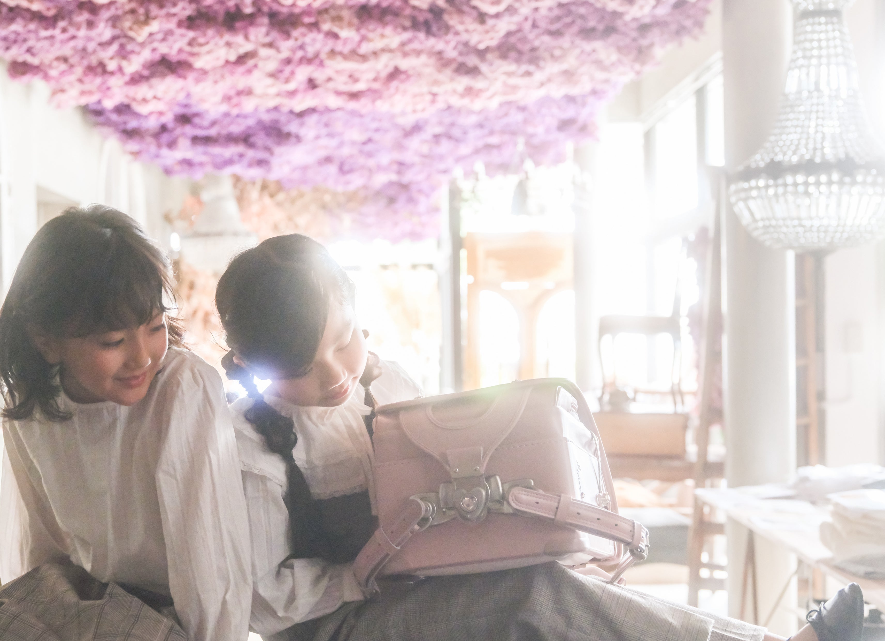 フランスの焼き菓子「マカロン」をイメージしたボディーカラーと、マチベルトの差し色は生地にサンドされたクリームのよう。スイーツと可愛いものが大好きなお子さまとご家族のために、お菓子のようなランドセルに仕立てました。