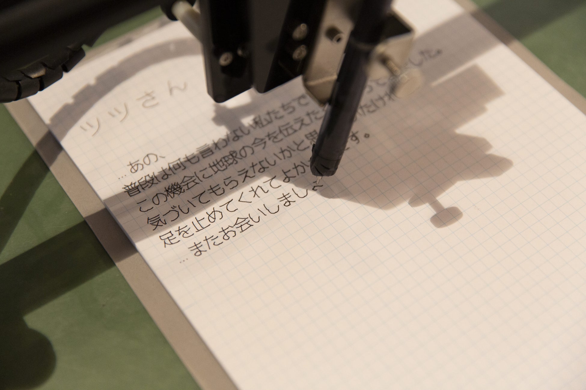 募金したものから、「ペンプロッター」によりその場で執筆・出力するお礼の手紙を受け取ることができます。