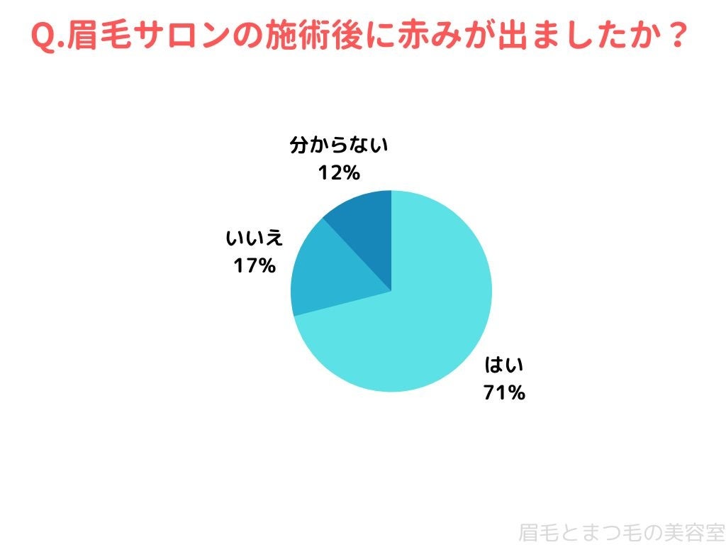 眉毛サロンの施術後は赤みが出ることがよくあることだと分かります。分からないと答えた人も、気になるほど赤みが出たというわけではないと推察できます。