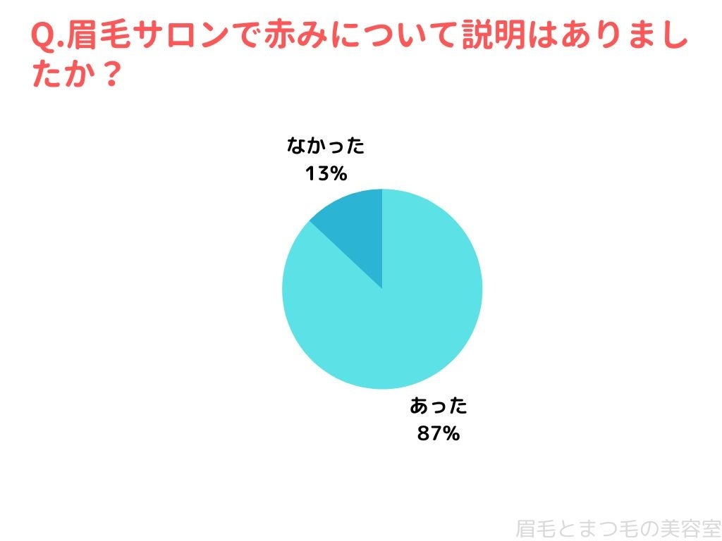 赤みについての説明が「あった(87%)」!ほとんどの眉毛サロンでは赤みについて説明がある