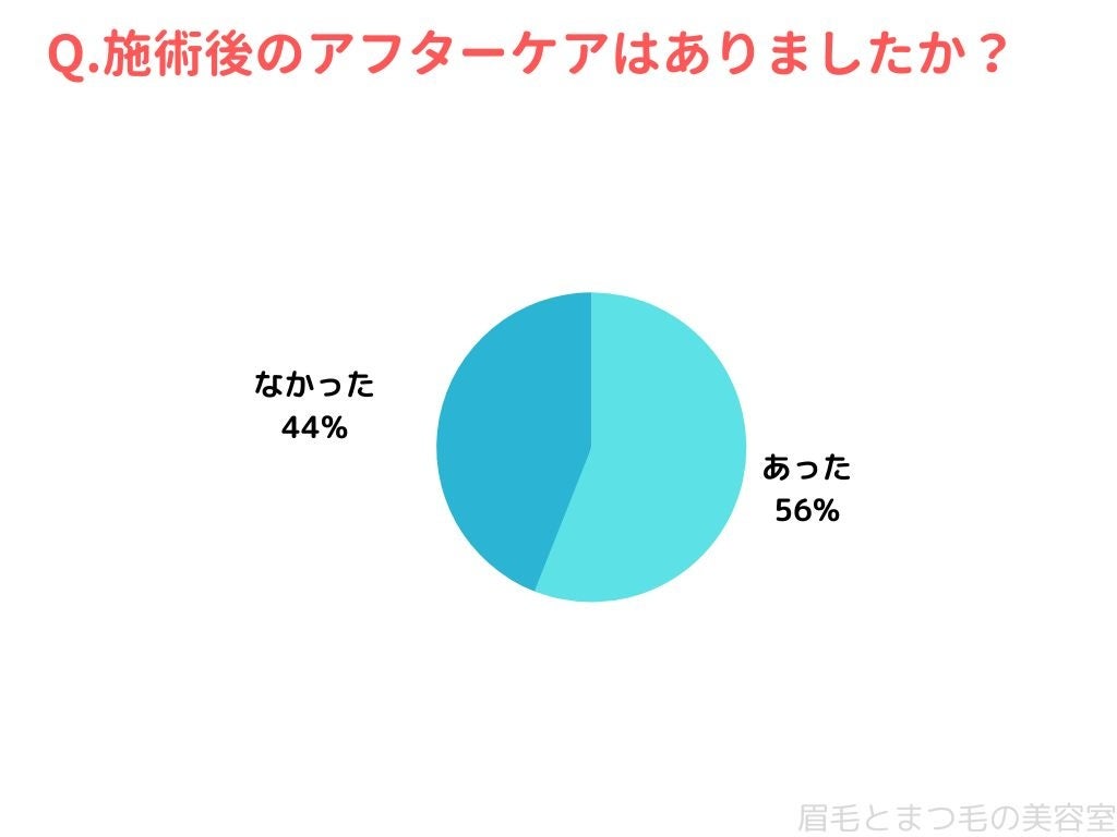 施術後のアフターケアがあったかお聞きしたところ「あった(56%)」、「なかった(44%)」という結果になりました。