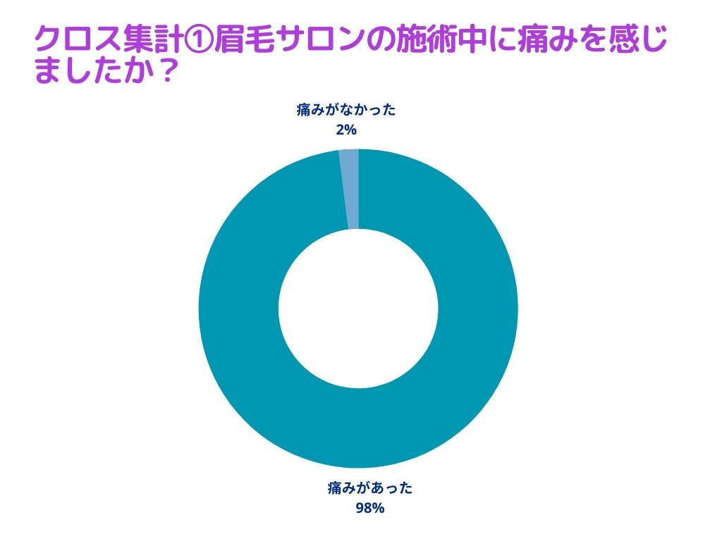 眉毛サロンの施術中に痛みがあったかお聞きしたところ「痛みがあった(98%)」、「痛みがなかった(2%)」という結果になりました。