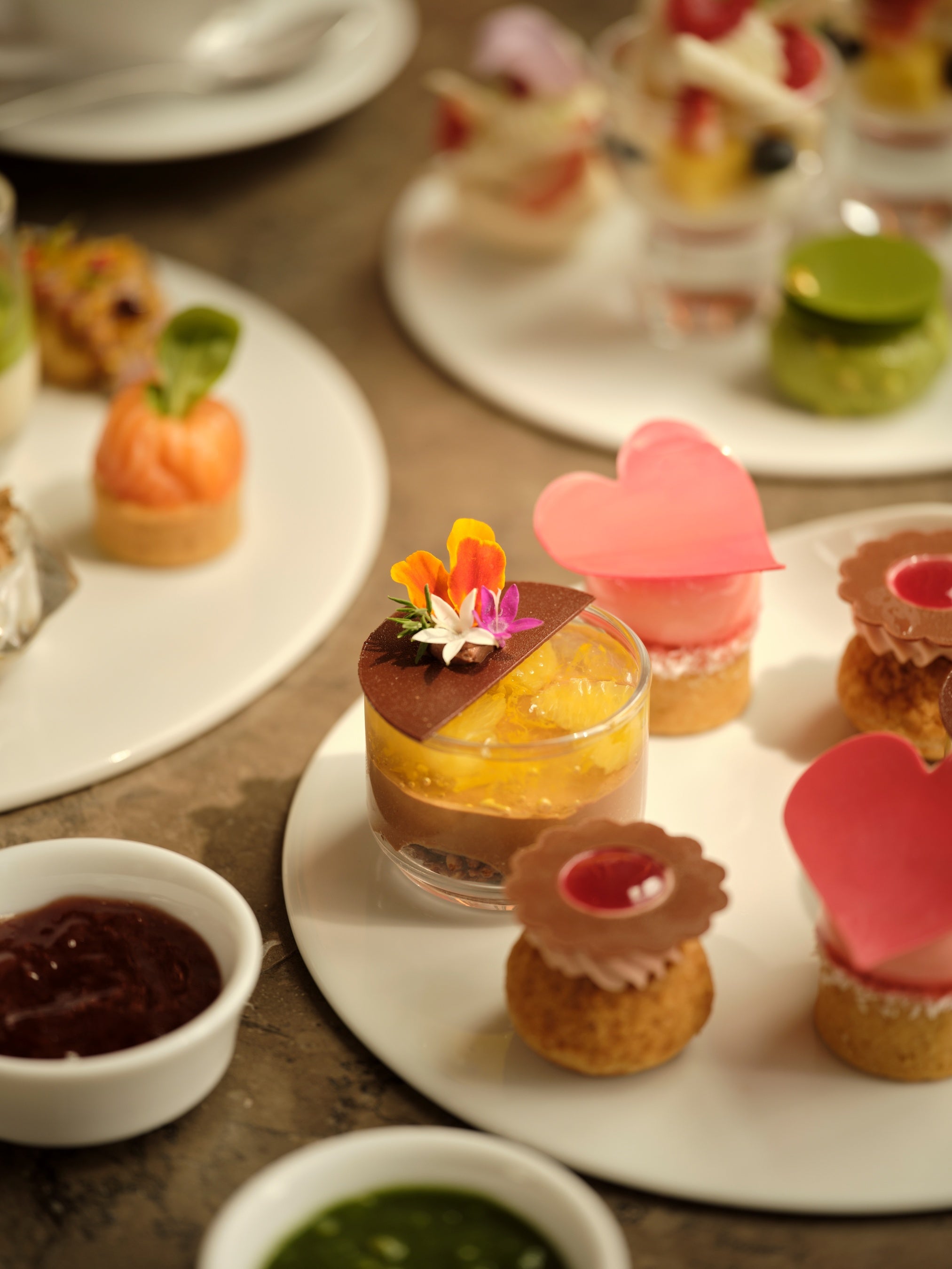 メニュー:ヴィーガンチョコレートムース / ベリーチョコレートムース / ホワイトチョコレート いちごのヴァシュラン / 抹茶ブッセ / いちごとチョコレートのトライフル / ベリーシューチョコレートのカスタード / 東京酒造酒粕とズワイガニ サーモンのタルト / スパイシーな鴨胸肉 カカオ風味のファラフェル / 甘エビ 真鯛 キャビア 豆乳のブランマンジェ / エッグスラット トリュフ / コーヒー&チョコレートスコーン / プレーンスコーン / 豆乳ホイップ / いちごジャム / 糀みつ / 江戸菜と柚子の白餡