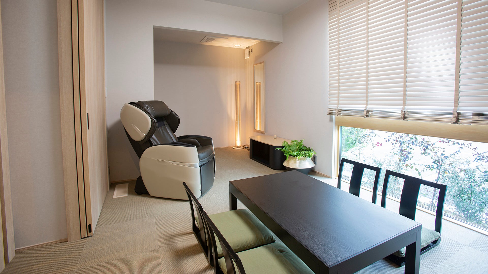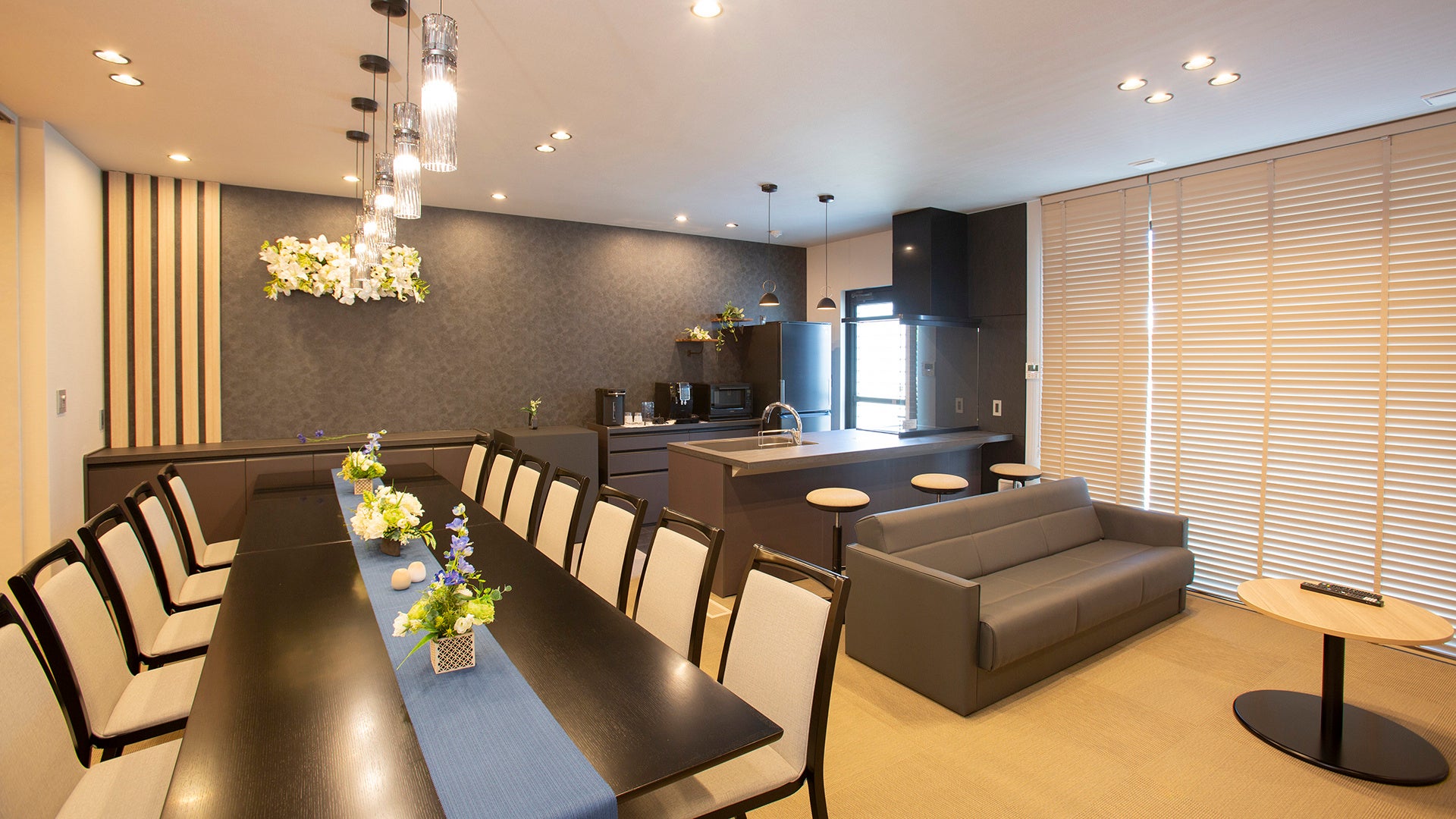 今回コラボした地場大手住宅メーカー「アイウッド」の設計士の方からの提案で、広々とした空間を活かして落ち着いた雰囲気を出しつつ、我が家のように寛げるようなナチュラルな色合いのコーディネートも特徴となっています。