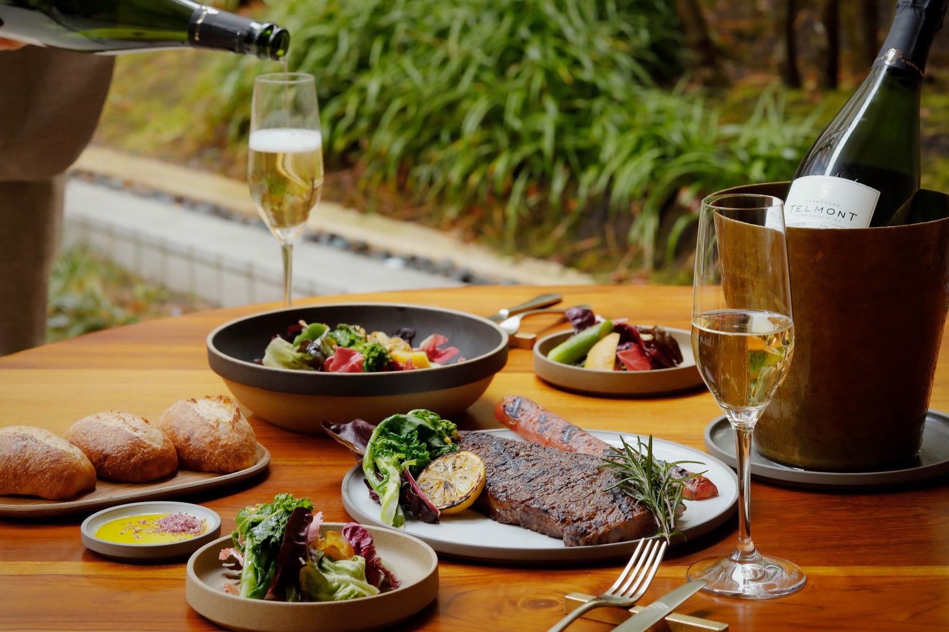 この「ガーデンランチ」には、ホテルが運営する無農薬ガーデンで収穫したハーブや野菜を使ったサラダ、炭火で焼きあげたメインディッシュ(魚 / 牛肉 / ベジタリアンから1つをセレクト)とデザート、そして1ドリンク(シャンパーニュ「Telmont」またはノンアルコールの自家製シュラブ)をご提供。食後には、シェフがホテル隣接のハーブガーデンをご案内するツアーも。自然派ラグジュアリーリゾート「シックスセンシズ 京都」ならではの、自然とつながる食体験をお届けします。