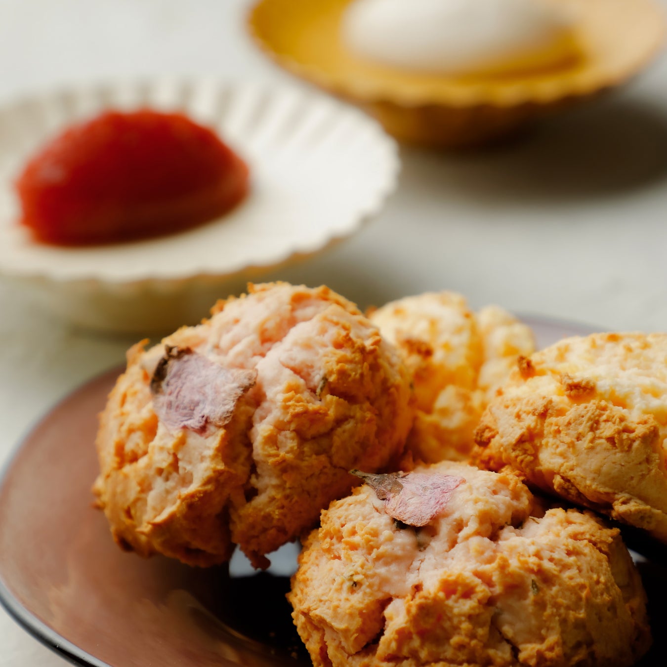 (3枚目)白みそスコーン、桜スコーン、発酵いちごと桜のジャム、甘酒クリーム