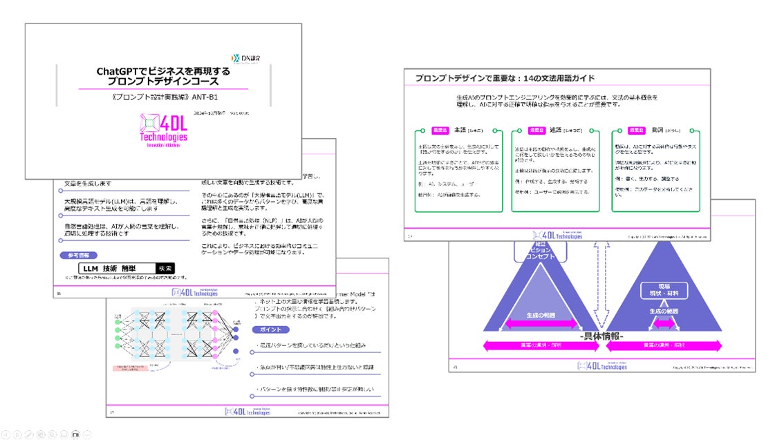 2024年10月から提供を開始した、《非エンジニア向けに実務でChatGPTを活用するための実践型リスキリングプログラム【ANT-B1】》の設計担当・講師担当がお客様に展示説明をさせていただきます。