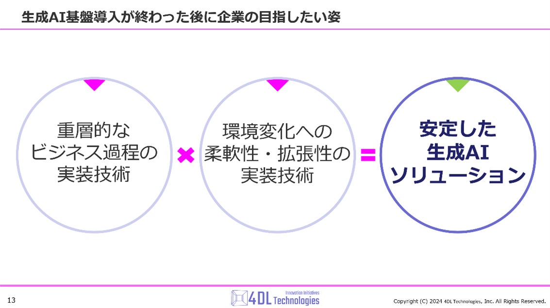 ビジネスとして生成AIを本格的に活用したいと考えたときに出てくる課題が生成物の《揺らぎをどう減らすのか》と《一般論ではなく焦点をどれだけ絞れるか》、そして《変化に合わせたプロンプトのメンテナンスをどうするか》です。