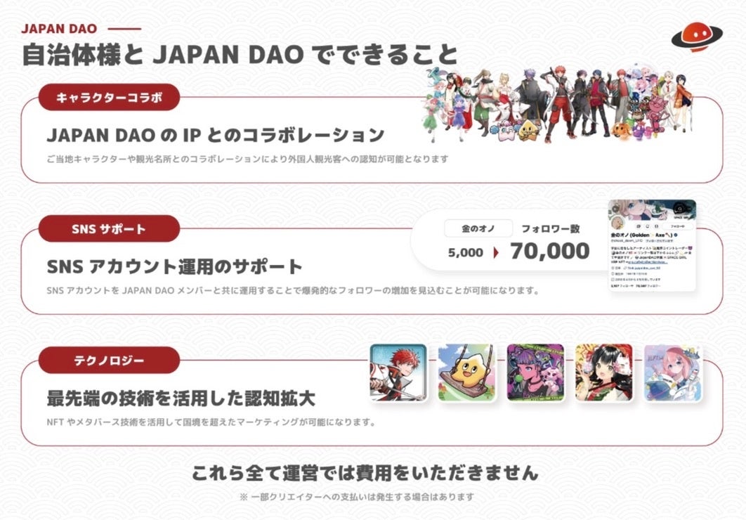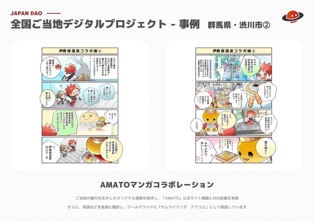 「私たちは、日本の地域資源をデジタル技術を通じて世界に発信することに大きな可能性を感じています。プロジェクトを通じて、地方経済の活性化と地域文化の発展を目指します。」『デジタルご当地プロジェクト』は、今後も各自治体や企業と連携し、さらなる展開を図る予定です。詳細情報については、JAPAN DAOの公式サイトやSNSをご覧ください。