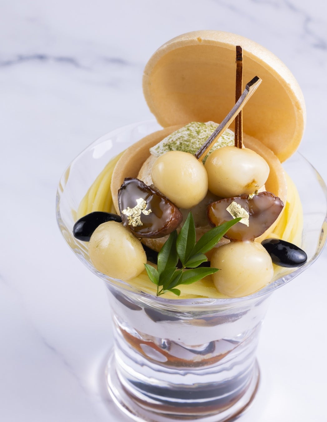 さらに、11月30日(土)までの期間限定で、秋を彩るパフェ2種、「イチジクと巨峰のモンブランパフェ “SHOGUN”」とミニサイズの「和パフェ 芋・栗・団子」も登場します。