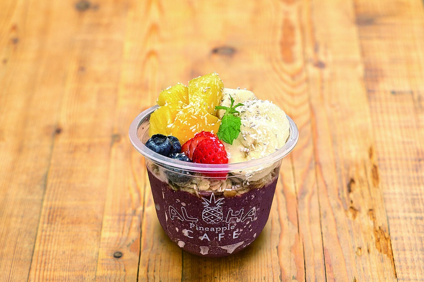 看板メニューのひとつである「マラサダ」は、ふわふわの生地にきび砂糖をまとわせた揚げドーナツ。シンプルでありながら、軽やかな食感とほどよい甘さが魅力で、世代を問わず人気を集めています。また、スーパーフードとして知られる「アサイーボウル」は、栄養価の高いアサイーにフルーツやグラノーラをトッピングした一品。見た目も華やかで、ヘルシーかつ満足感のある味わいは、ハワイ本店でも日本でも多くのリピーターを生んでいます。