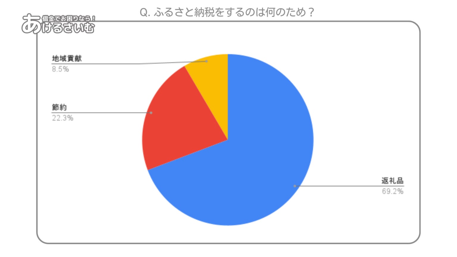 債務整理や闇金など借金問題をテーマとする情報メディア「あけるさいむ」を運営する株式会社ONE FOR ONEでは、2024年10月「ふるさと納税・寄付先を選ぶ基準」をテーマとしたアンケートを実施しました。