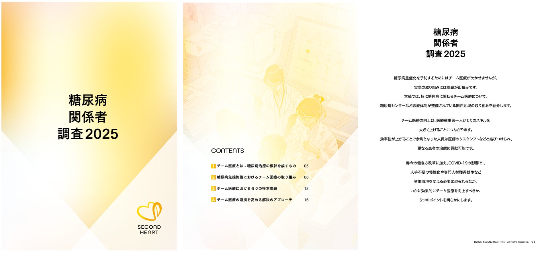 ホワイトペーパー「糖尿病関係者 調査2025」では、関西エリアの先端医療施設9施設の協力を得て、チーム医療の実態と課題を分析。特に、チーム医療を阻害する6つの根本課題を特定し、それぞれに対する解決策を提示しています。