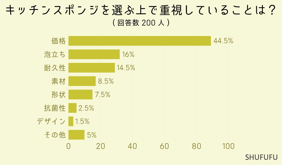 キッチンスポンジを選ぶ際に重視していることに関しては、「価格」が1位になりました。
