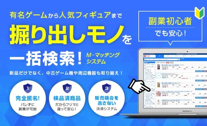 ゲーム機・ゲームソフト・トレーディングカード・フィギュア・プラモデルなど、個人が法人から1個からでも商品を仕入れることが可能となります。