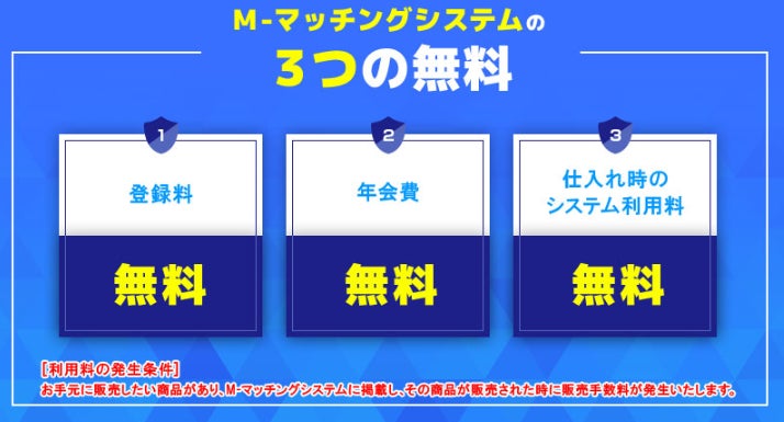 (ただし、⼿元に販売したい商品があり、M-マッチングシステムに掲載し、その商品が販売された時に販売⼿数料が発⽣致します。)