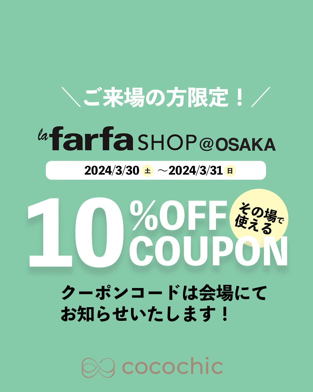 ご来場の方限定でcocochicオンラインストアで使える2日間有効の10%OFFクーポンを配布いたします。