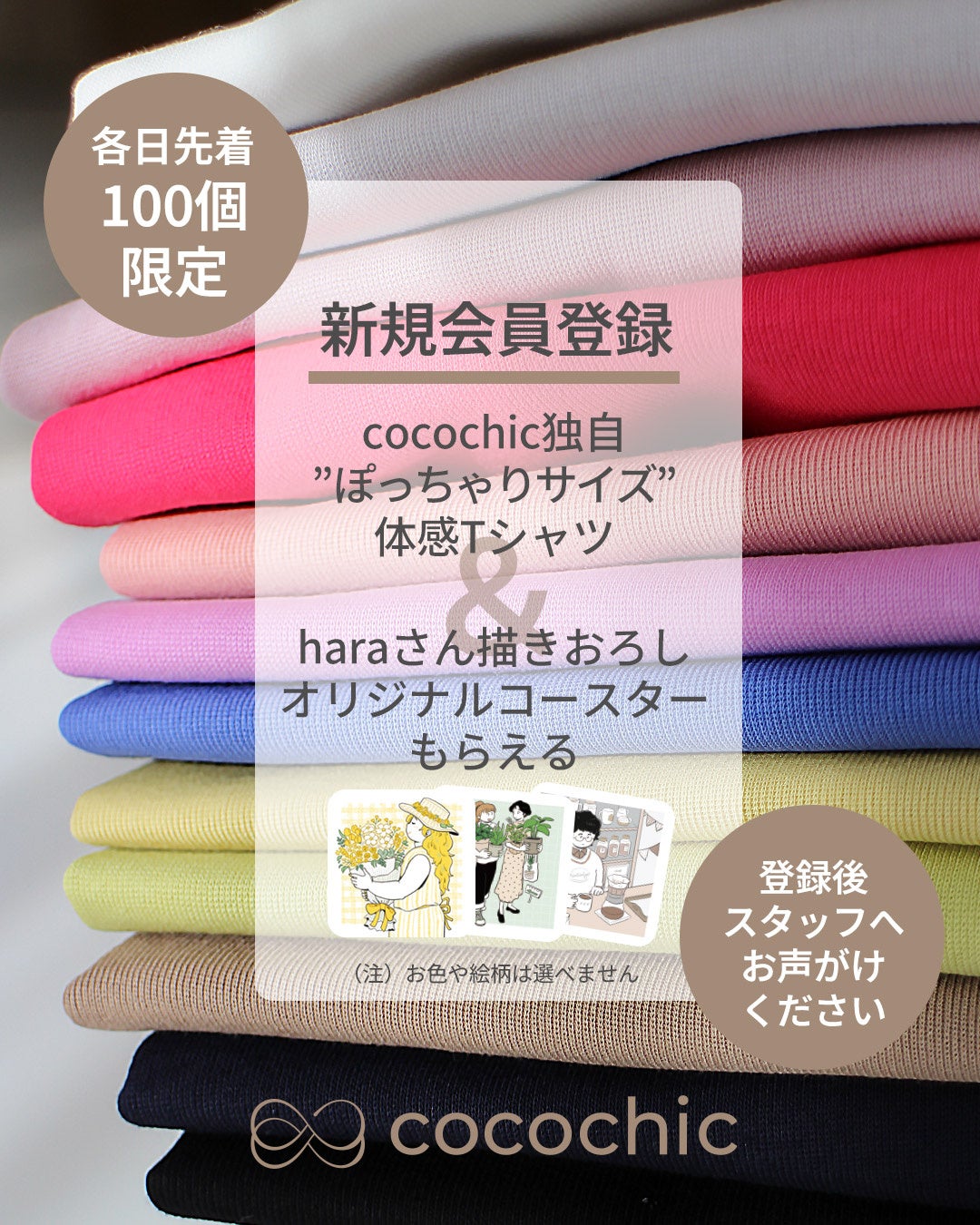 ②会員登録で、cocochicオリジナル「サイズ体感Tシャツ」プレゼント