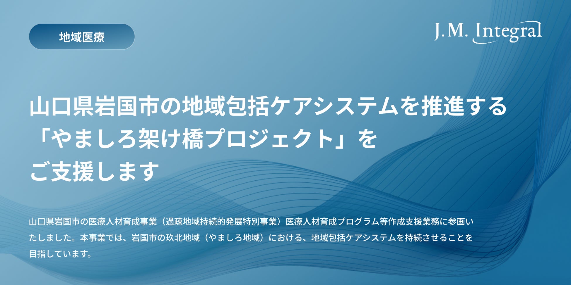 地域医療を支援する株式会社ジェイエムインテグラル(東京都港区 代表:和泉大志)は、山口県岩国市の医療人材育成事業(過疎地域持続的発展特別事業)医療人材育成プログラム等作成支援業務(以下、本事業)に参画いたしました。