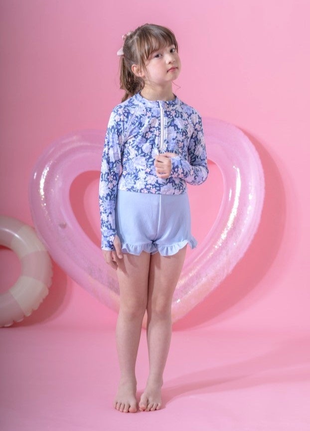 ◆【NEW!】1枚で着られる ラッシュガード&フリルパンツ水着セット(ZS033)