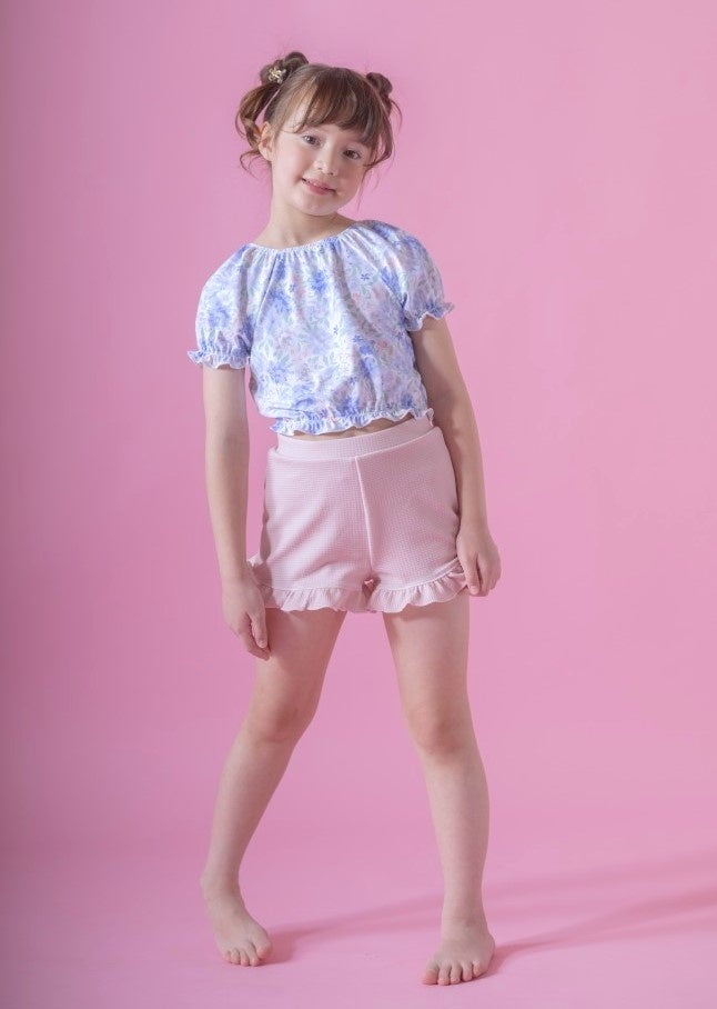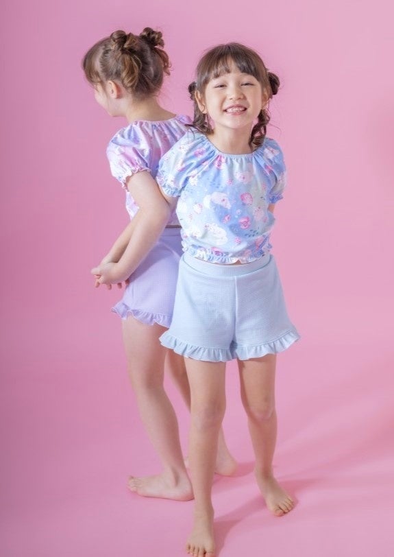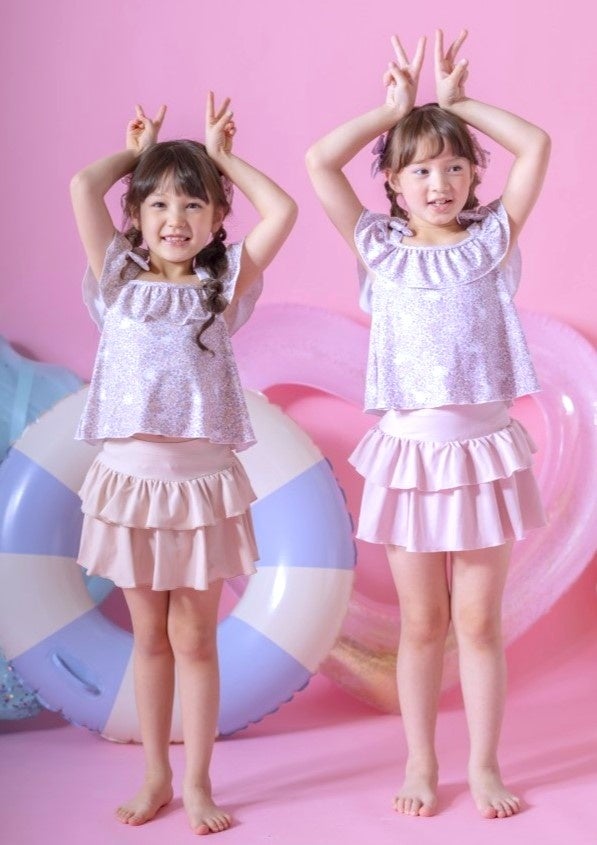 Tシャツ感覚で着られるパフ袖トップスがかわいいセパレート水着の上下セットも新登場。