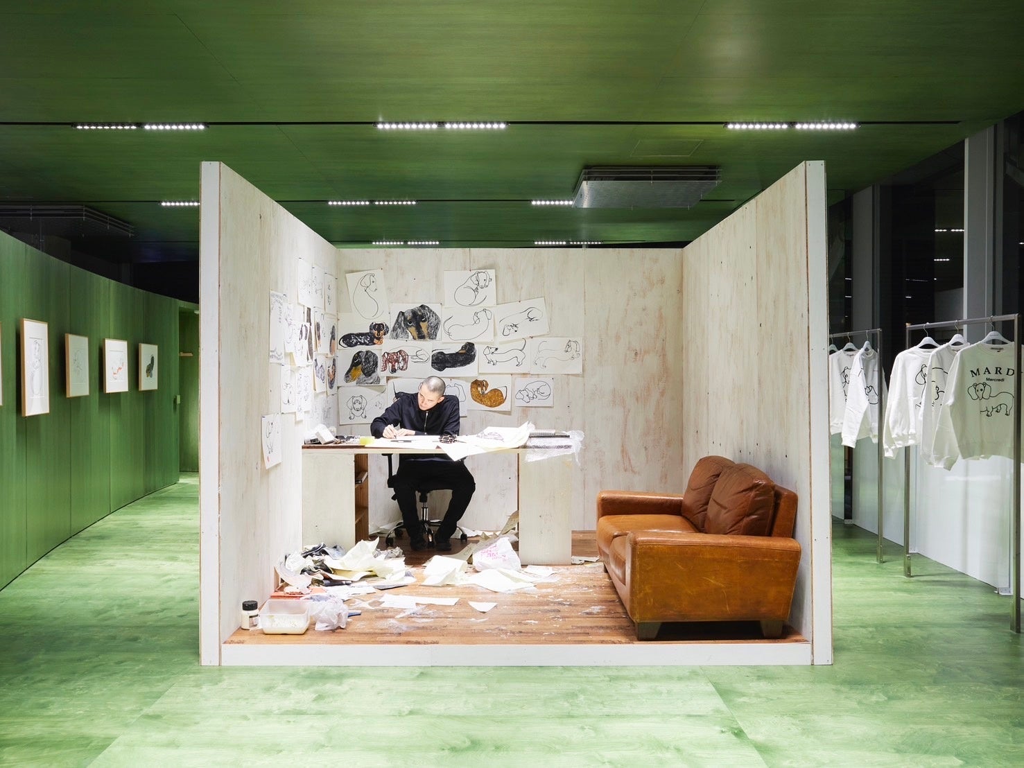 ストア2F全体を使用し、ドローイング作品の展示とともに、アーティストのアトリエを再現したインスタレーションを披露します。