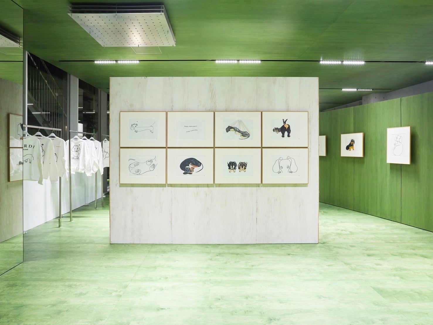 「Mardi Mercredi(マルディメクルディ)」とのコラボレーションでは、ダックスフントのドローイングシリーズを手掛け、ダックスフント特有の表情や仕草に焦点を当て、シンプルでありながらユーモアを感じさせる作風で作品を仕上げました。