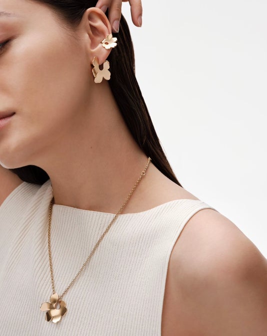 10月1日、ミニサイズのピアスとペンダントがそれぞれシルバー、ゴールド、ブロンズ素材で新たに登場。さらに、 昨年シルバーで発売されたスモールペンダント、スモー ルピアス、イヤーカフのブロンズ素材が新たに加わります。これまでのより大ぶりなシルバージュエリーに加え、『Kalevala × Marimekko』コレクションはより幅広いシ ーンでお楽しみいただけるラインナップとなりました。