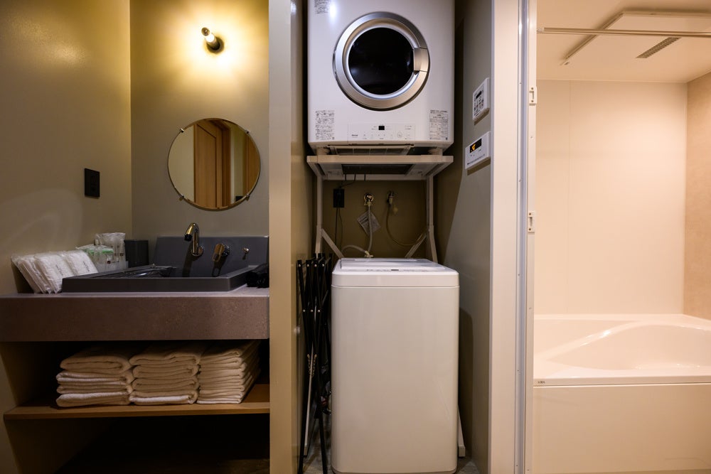 キッチンや洗濯機、ガス衣類乾燥機、リビングを備えたコンドミニアムタイプのため、自炊や長期滞在にも対応し“暮らすように過ごす沖縄滞在”を実現。連泊やワーケーションなど、多様な滞在ニーズに応える施設です。ホテル宿泊者専用の共用プールやレストランなども併設されています。