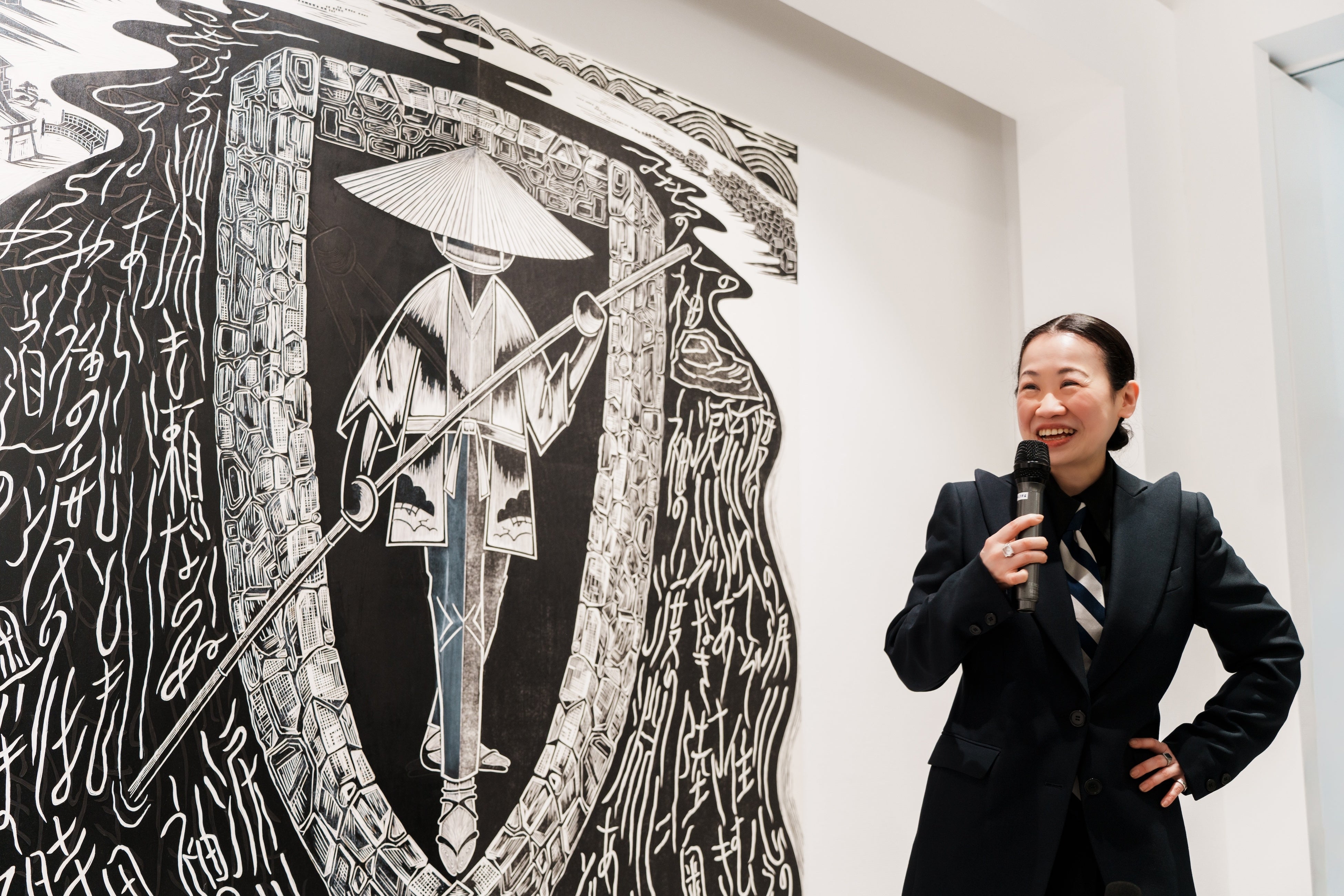 ニュースに疑問を感じたりと、今起きている事象に起爆剤を得てテーマを見つけ、彫刻刀一本で木版を切り裂く。版画なのに1枚しか刷らないという潔さ。体力も気力もいる作風はキャプションを見るまでは男性の作品だと思われることも多いと聞く。属性にとらわれず私個人から生まれ出たものだと解釈している、とは本人の弁。
