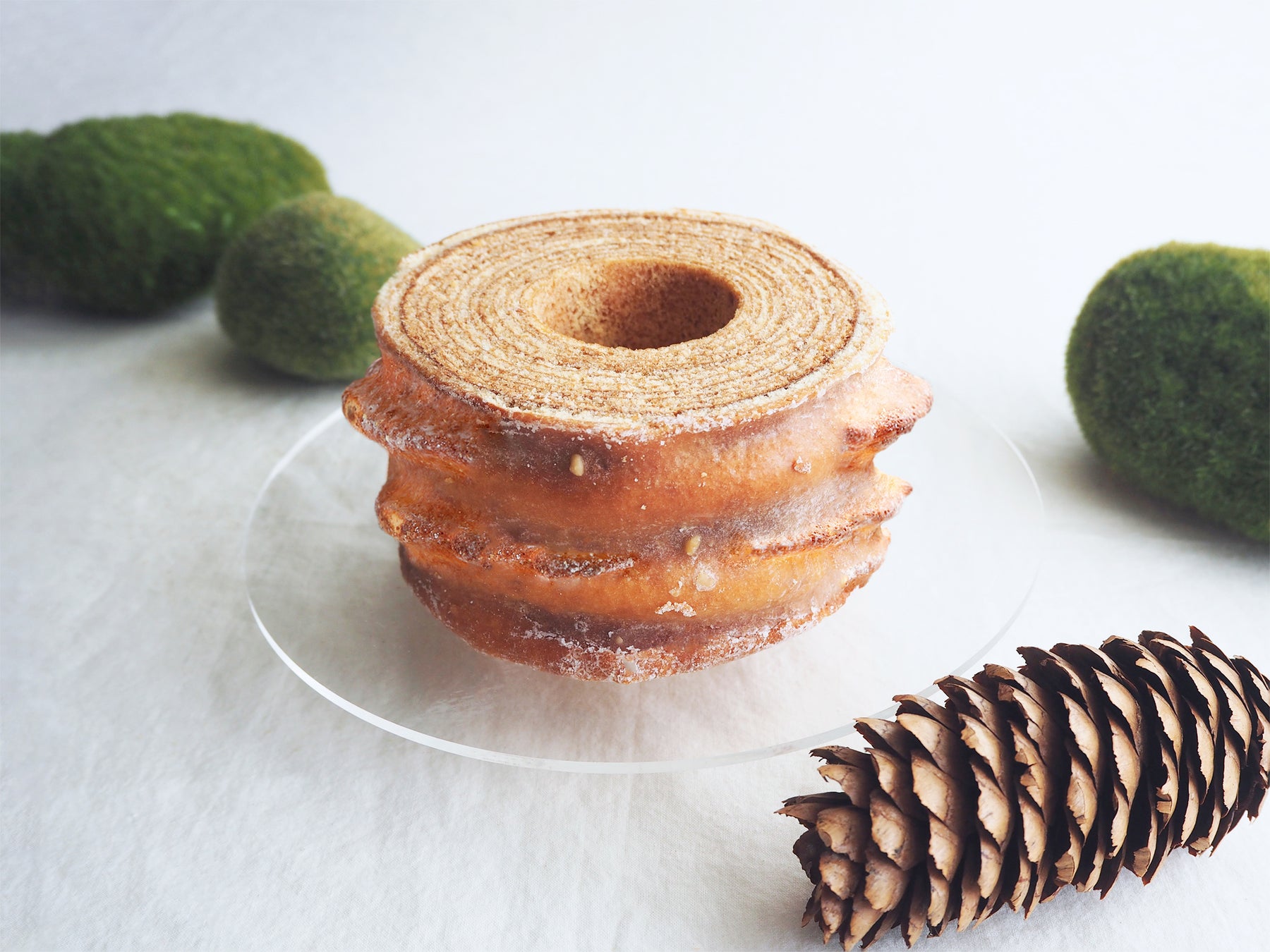 同じく己斐にルーツを持つ洋菓子店「櫟 kunugi」は、この地に根付く文化を全国へ発信するため、400年以上続く盆栽の名門「庭能花園(にわよしかえん)」の着能松太郎(ちゃくのう まつたろう)氏監修のもと、新作スイーツ「盆栽バームクーヘン」を発表いたします。