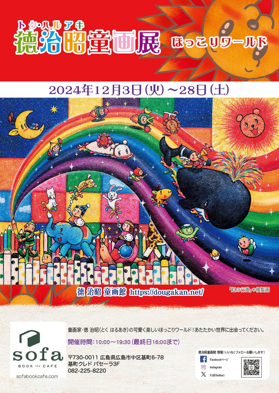 広島マリーナホップは20年の歴史に幕。『徳治昭童画展』は最後を見届けます。また、12月3日(火)より広島市内の『パセーラ』内『BOOK AND CAFE sofa HIROSHIMA』にて連続開催。