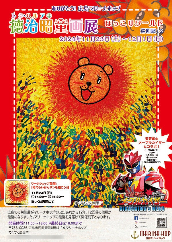 『徳治昭童画展ほっこりワールド』広島へ。2会場連続開催。さよなら広島マリーナホップ。11月23日(土)より閉館日の12月1日(日)まで