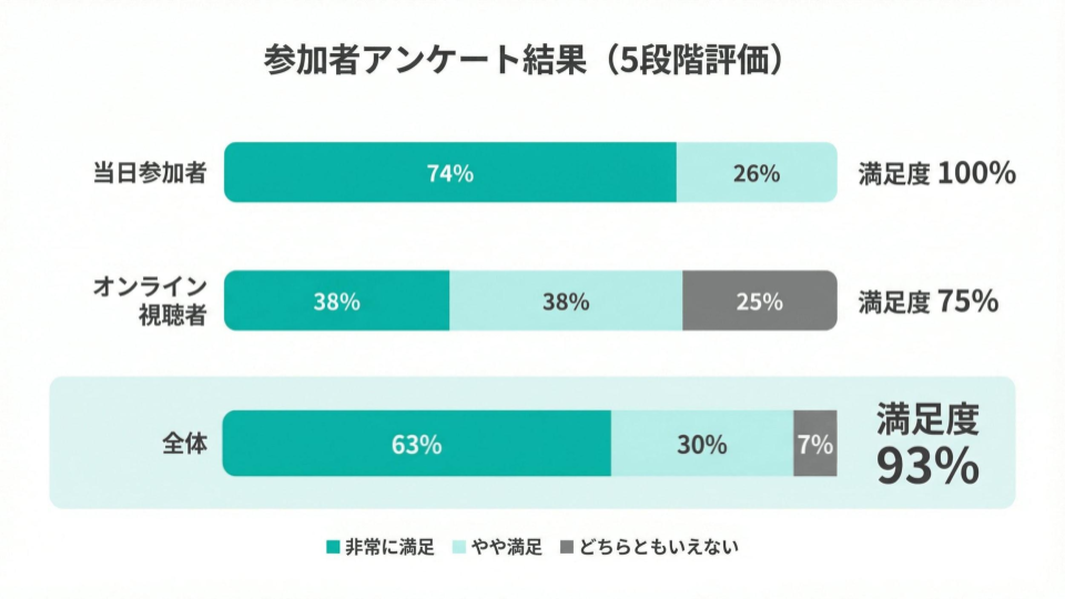 当日の対面参加者からは満足度100%の評価をいただきました。