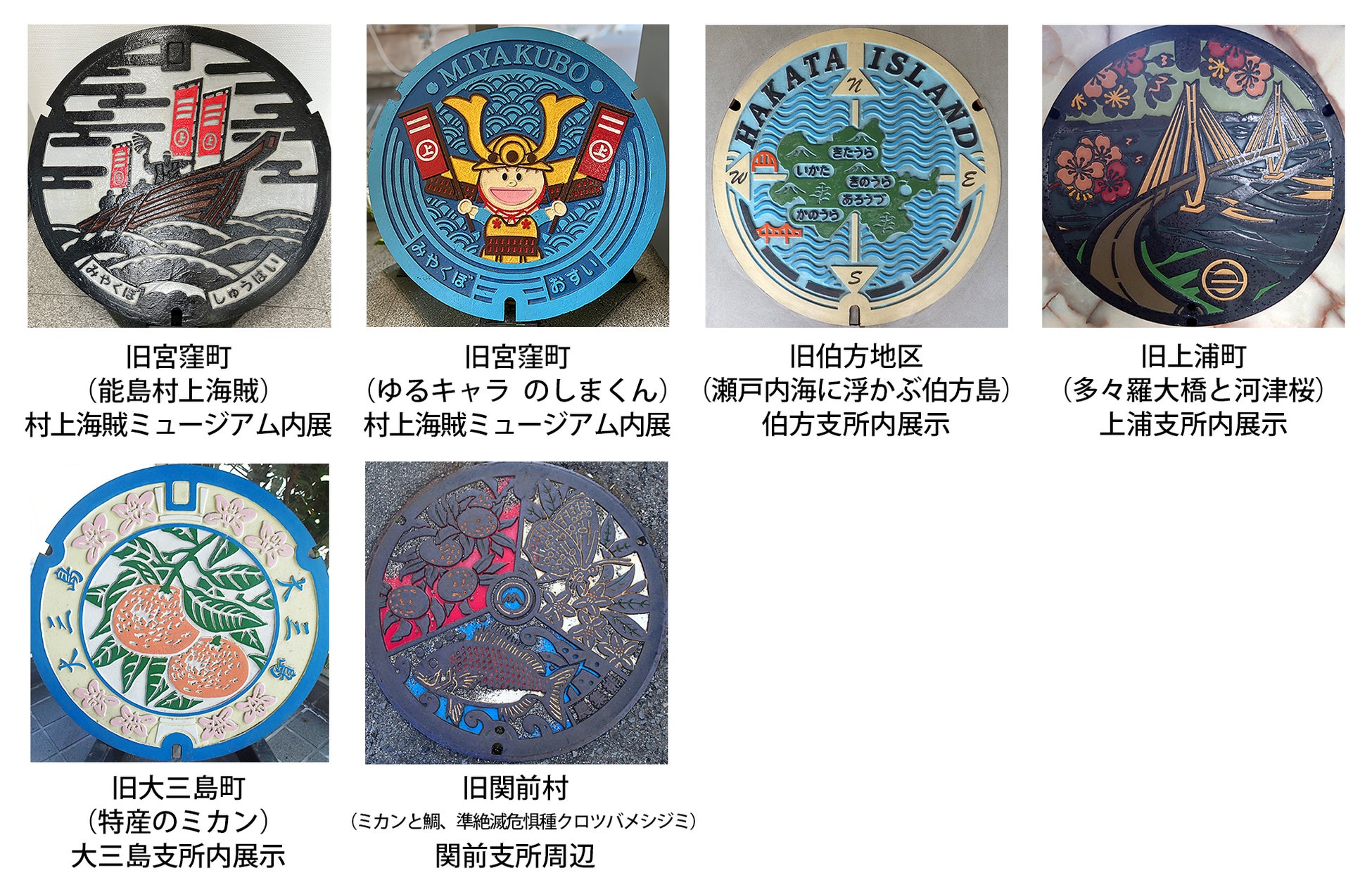 新たに制作したデザインマンホールは、今治市中心市街地周辺「今治市公会堂前」「今治商店街入口」「みなと交流センター「はーばりー」」の歩行者専用道路に各1ヶ所設置します。