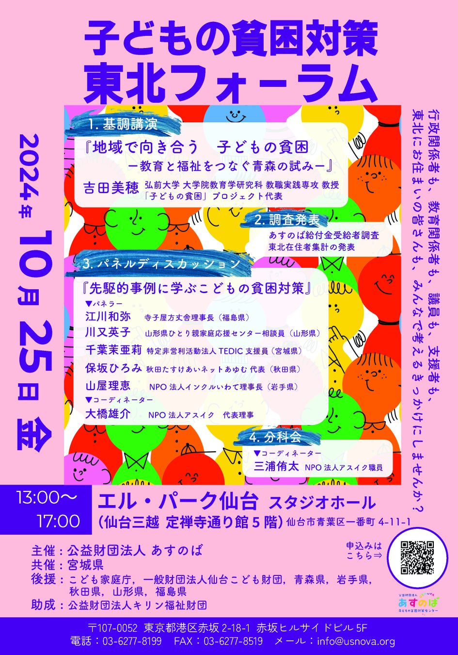 子どもの貧困対策 東北フォーラム - 公益財団法人あすのば 主催、2024年10月25日に開催