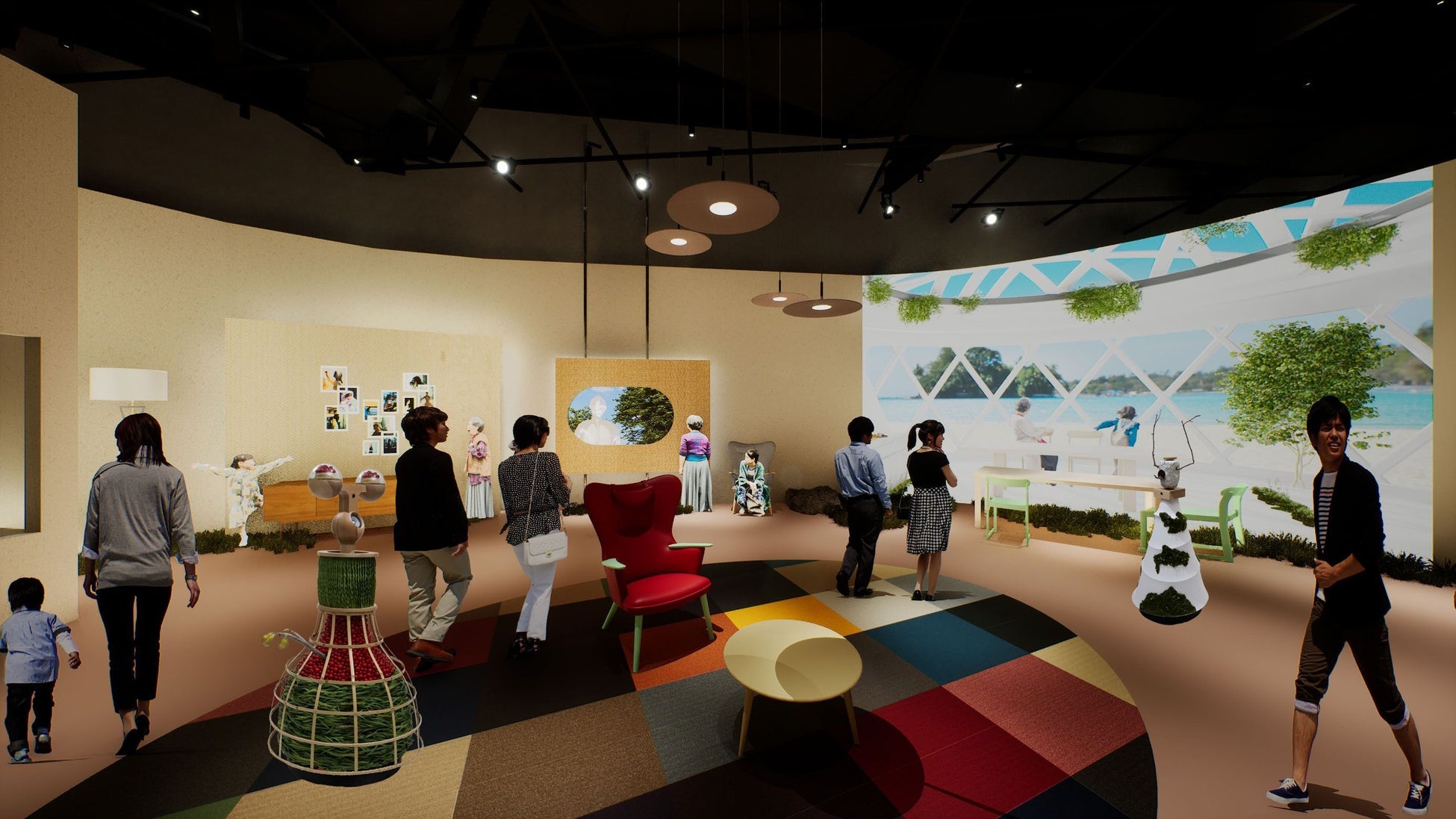 パビリオンの展示空間は3つのゾーンで構成されています。先端技術を駆使した約50体のアンドロイド・ロボット・CGキャラクター等のアバターがおり、展示空間には約30体が出演しています。導入部となるゾーン1「いのちの歩み」では、太古の昔から現代に至るまで、日本人が「モノ」にいのちを宿してきた歴史を展示します。続くゾーン2「50年後の未来」で展開されるのは50年後の未来。人間がアンドロイド達と共存し、高度な技術を用いたさまざまなプロダクトを活用しながら暮らす様子を、物語の中に入って追体験できます。ゾーン3「1000年後のいのち“まほろば”」では、1000年後の世界をイメージした音と光に包まれた幻想的な空間の中で、科学技術と融合し、「からだ」の制約から解き放たれた1000年後の人間と出会うことができます。