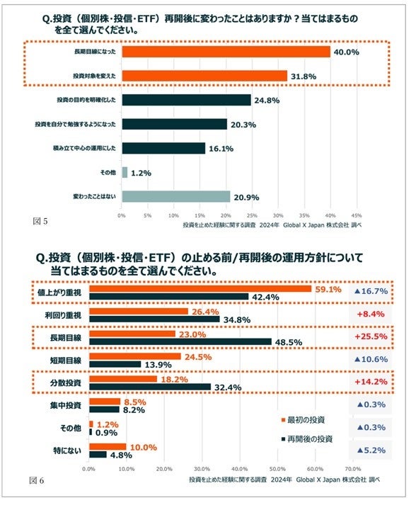 投資を止める前後での違いでは、投資再開後は4割が「長期目線になった」と回答し、約3割 が「投資対象を変えた」と回答しました。(図5)