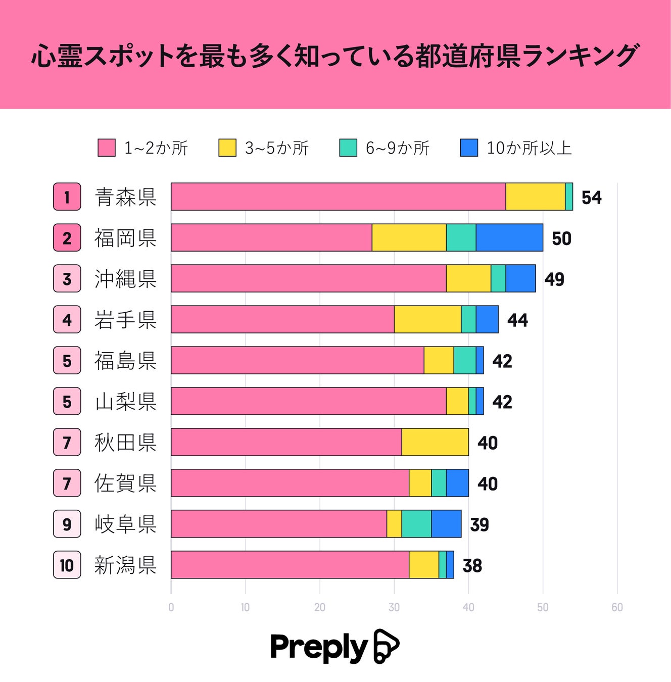 特に福岡県では、10か所以上の心霊スポットを知っていると回答した人が9人と、他県の2倍以上にのぼっています。