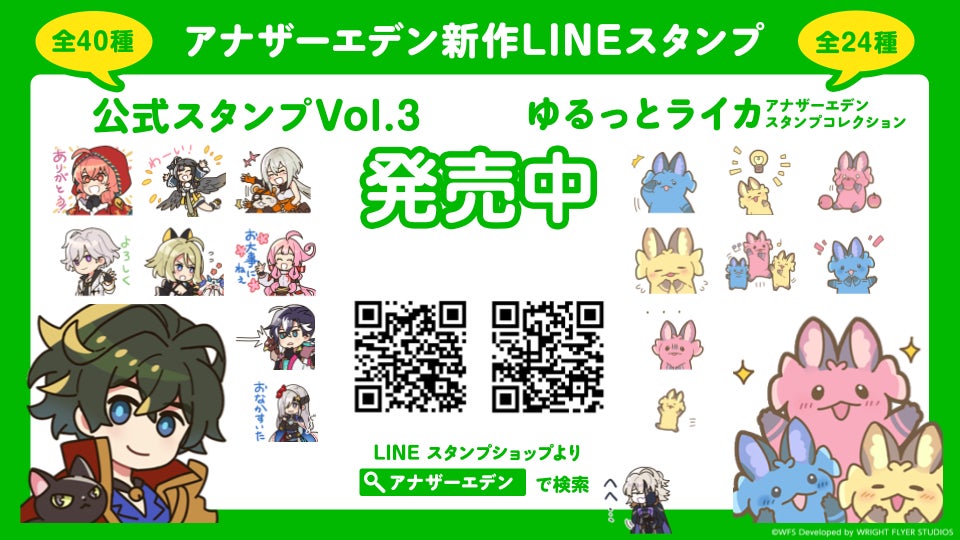 アナザーエデン公式LINEスタンプ第3弾、そしてアナザーエデンスタンプコレクション「ゆるっとライカ」がクリエイターズスタンプとして発売中。