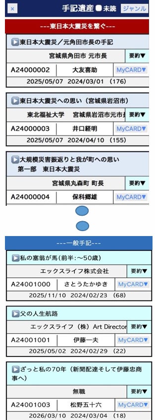 幸い高校の同級生がシニアベンチャーで「生きモノまるごとDX(ライフDX)」xLifeサービスを始めた。この中に私たちの想いを未来へ繋げる「手記遺産」サービスがあり、これを利用して記帳し公開してもらう事とした。