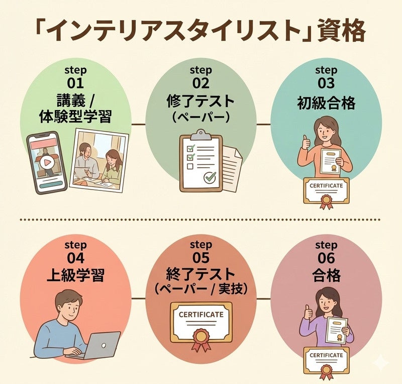 今秋頃を目途に、学んだスキルを証明する民間資格「インテリアスタイリスト」の新設を予定しています。趣味として楽しみたい方向けの「初級」から、プロを目指す「上級」まで、段階的なカリキュラムを構想中。